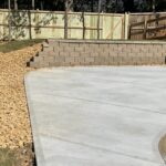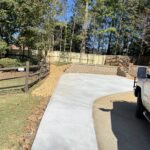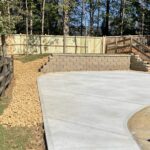 Dug out hill and installed block retaining wall. Poured driveway addition and installed dry creek bed to the left of the driveway to help with proper water run off.