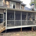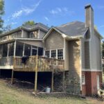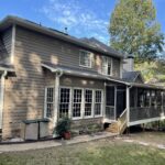 Replaced all siding and trim on fireplace, replaced all damaged trim and siding on bay window, replaced damaged siding, trim, fascia and soffit on the residence, replaced rails on front porch and steps on back deck. Painted entire house, including siding, fascia, soffit, gutter, doors, shutters and trim.