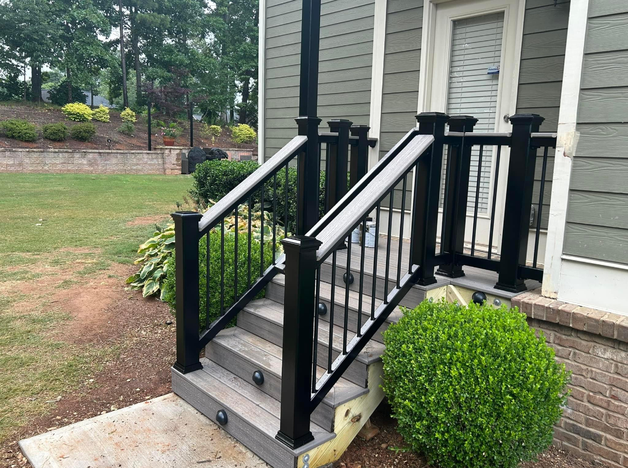 Removed existing decks. Built 18’x18’ back deck with Trex decking and rails. Build 7’x4’ side deck with Trex decking and rails. Installed low voltage lighting on both decks.